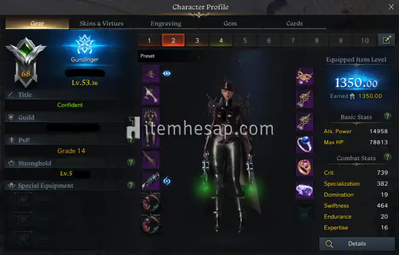 Kadan sunucusunda 1350 item level Gunslinger hesap.