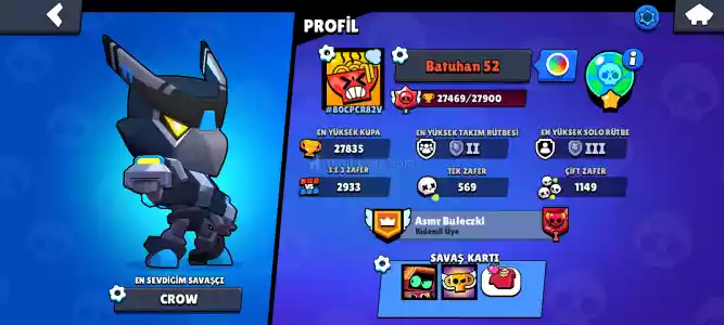 2 Sezon Brawl Pass Alınmış, 21 Tane 9 Seviye, 2 Tane 11 Seviye, 4 Tane 10 Seviyeli Karakterler vardır. 25 Tane Kostümlü Ve Şöhret açılmış. Tertemiz Hesap Bu Hesap Kaçmaz!