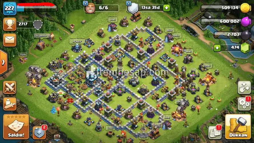 227 Level, Belediye Binası 13, Kral 65, Kraliçe 70, K. Şampiyonu 12, B. Koruyucu 33 Level - 6 İşçi