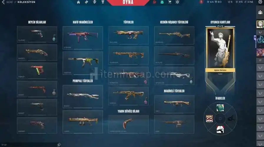 gibi bir sürü güzel skin bulunmakta