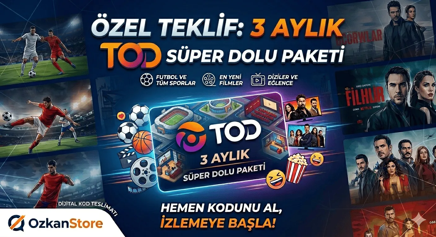 3 ay boyunca geçerli Tod Süper Dolu Paketi ile Süper Lig’den Premier League’e, en popüler dizilerden ödüllü filmlere kadar tüm içeriklere sınırsız erişim sağlayın. Size iletilen özel aktivasyon kodunu kullanarak hesabınızı hemen aktif edebilirsiniz.