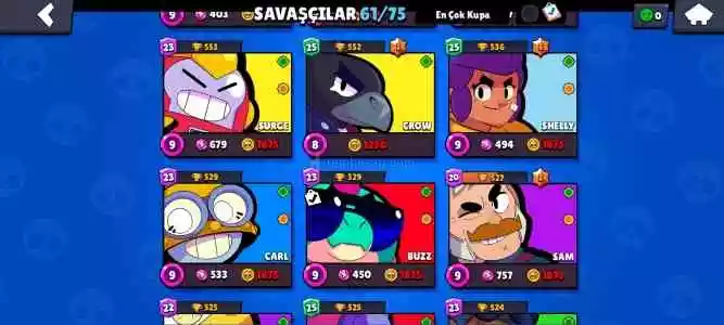 Hesapta 61 karakter var neredeyse bütün karakterlerde kostüm var