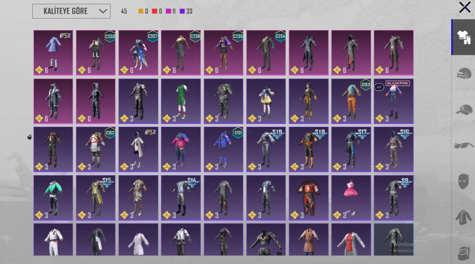 • BlackPink Lovesick Girls + C3S7 Seti + Şafak Avcısı Seti + Gölge Asker + Veba Taşıcıyı gibi birçok set ve kostüm mevcuttur
