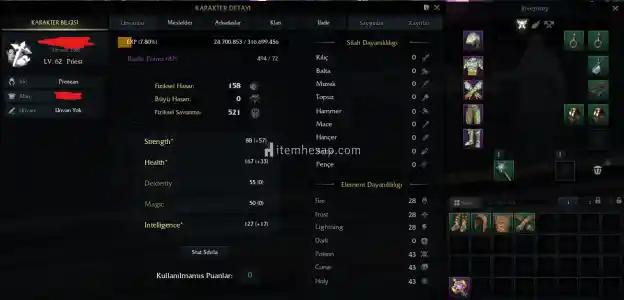 Öncelikle selamlar arkadaşlar Full puss bugün alındı kostüm matta kanat pelerin 1 aylıktır 10 günlük pre karakter farma hazır durumdadır 62 lvl %5 hagard 62 lvl görevleri durmaktadır 60 61 yapılmıştır onun harici tüm görevleri mevcuttur chitin görevleri yapılmış olup üstünde 4 parça +8 paper vardır str basılı tek parçası eksiktir al farma otur başka birşeyle uğraşma 53 lvl görev silahı vardır 125 ap 1660 ap olmakta görev silahı ile full str 8 takı + olarak 54 lvl rogue 50 mage 50 warrior var hesapta mail ile birlikte verilecektir alıcısına hayırlı olsun fiyat konuşulur alıcı kişiye göre