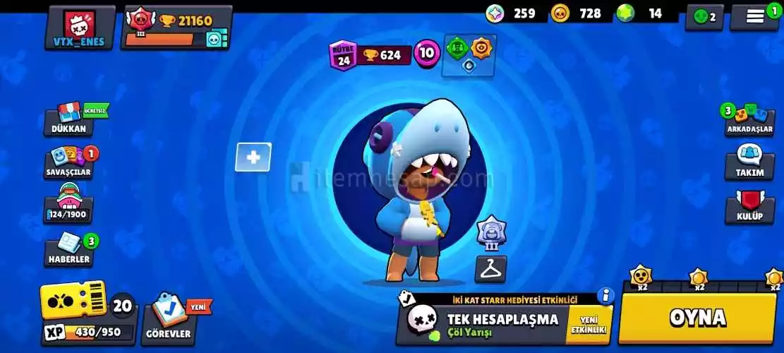 öncelikle (Mail Değişir) 65karakter  35 skin li bs hesabı  10 karakter eksik sadece 21.000 kupa hesap ta kasılacak çok savaşcı vardır rahat kasarsınız