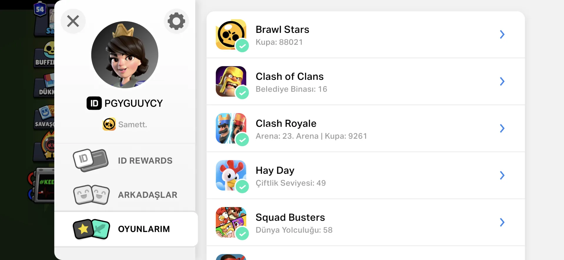 total 473 skin 101 karakter hepsi max içinde 16seviye belediye binası clash of clans ve 10k clash royale vardır