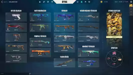 • Hesapta bulunan skinler şunlardır