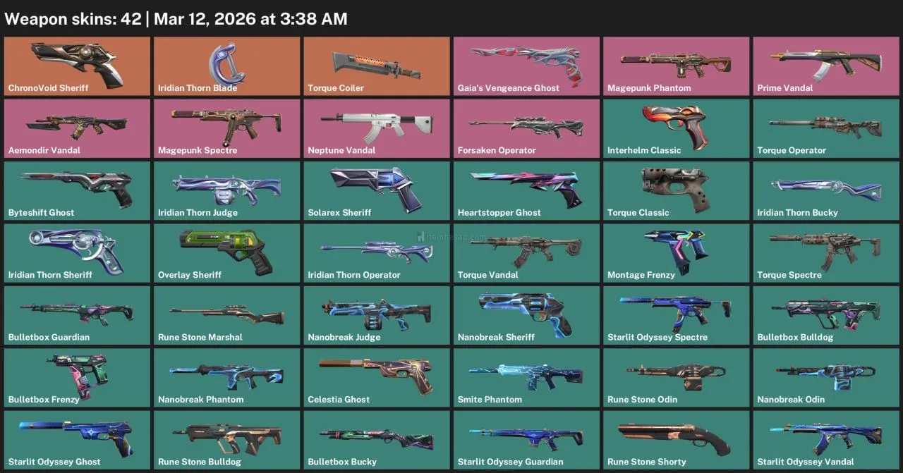 ChronoVoid Sheriff, Iridian Thorn Blade, Torque Coiler, Gaia's Vengeance Ghost, Magepunk Phantom, Prime Vandal, Aemondir Vandal, Magepunk Spectre, Neptune Vandal, Forsaken Operator