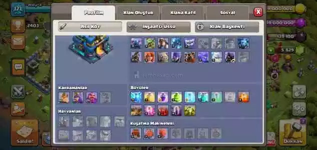 Belediye 12 Max hesap 171lv 5876 Elmas Supercell idye bağlı hesap 5 insaatci