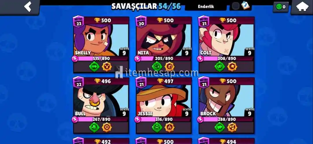 Brawl Stars 20k kupa hesap. 54 karakter!