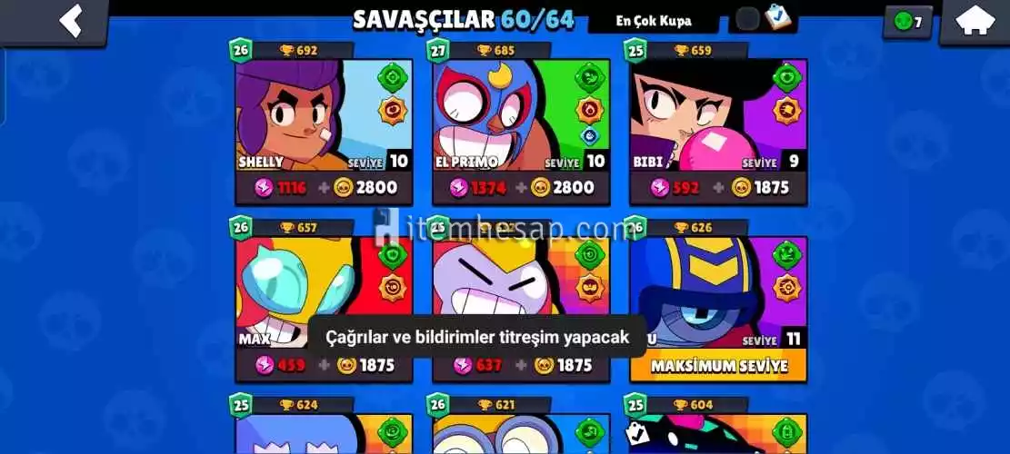 Brawl Stars 60 Karakterli Bol Bol Kostumlu Hesap