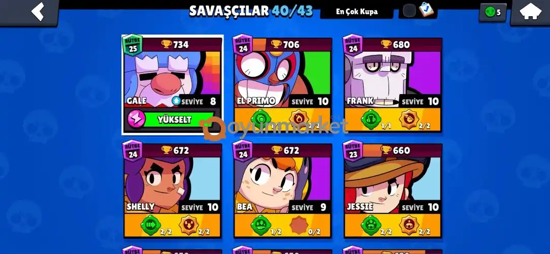 40 karekteri herşey Max olabiliyo 23.500 kupası olan güzel bı hesap fiyat isterseniz konusabiliriz