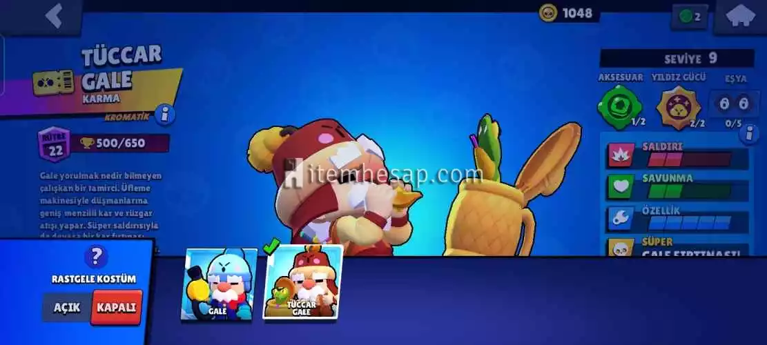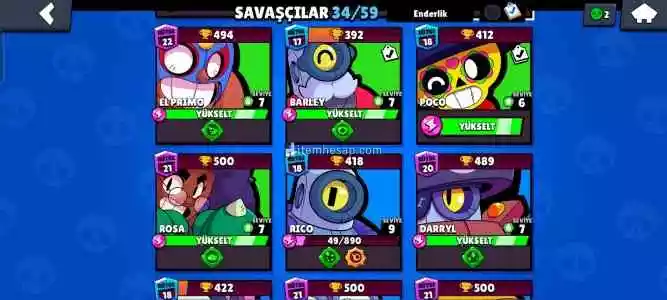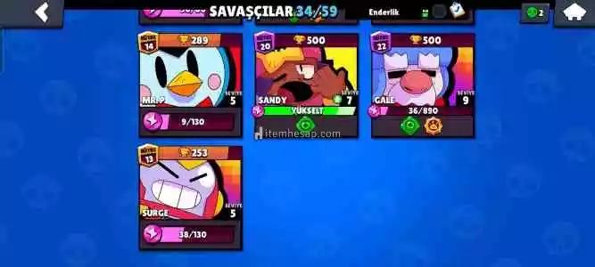 İlk sezon brawl passi alınmış ve bitirilmiş. Maskot Darly,PSG SHELLY ve TÜCCAR GALE bazı skinleridir 1 adet efsanevi var Sandy 29 taş ve 6000+ yıldız puanı vardır