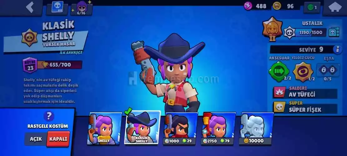 •Hesapta olan kostümler; Klasik Shelly, Haydut Colt, Defans Oyuncusu Bull, Barbar Kral Bull, Retro Brock, Büyücü Barley, Kırmızı Ejderha Jessie, Tıknaz Darryl, Maskot Darryl, Mega Kutu Darryl, Omega Kutu Darryl, Tavşan Penny, Öğrenci Emz, Süper Star Stu, Pembe Piper, Choco Piper ve Zalim Bibi bulunmaktadır.
