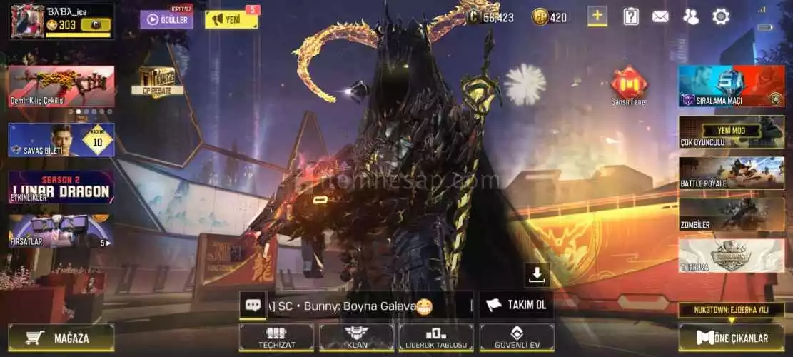 Hesapta 4 mitik ve 12 efsanevi silah,kostüm skini vardır