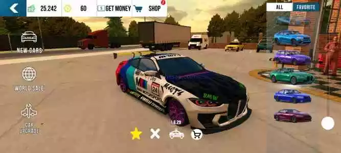 Oyundaki 19 bmw'de hesapta vardır. 1000coinlik otobüs, 5000coinlik Porsche ve 250tl'lik F1de var, bmw m4 g82 80tl'lik bir araba olup cizimlidir, otobüs ise 1695hp'dir toplamda 57 araç var ve çoğu güzel araba, alicilar yazsın