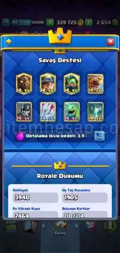 Clash Royale 7K Kupa 30 Max 8 Yıllık Hesap 2.5K Elmas