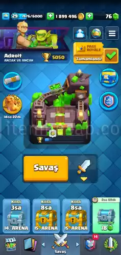 Clash Royale Hesap 5000Kupa 2 Milyon Altına Sahip