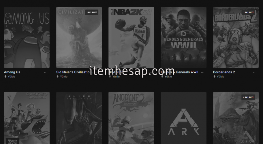 46 oyunlu toplam 2.600 Tl değerinde oyun ve unreal engine materyali içeren hesap