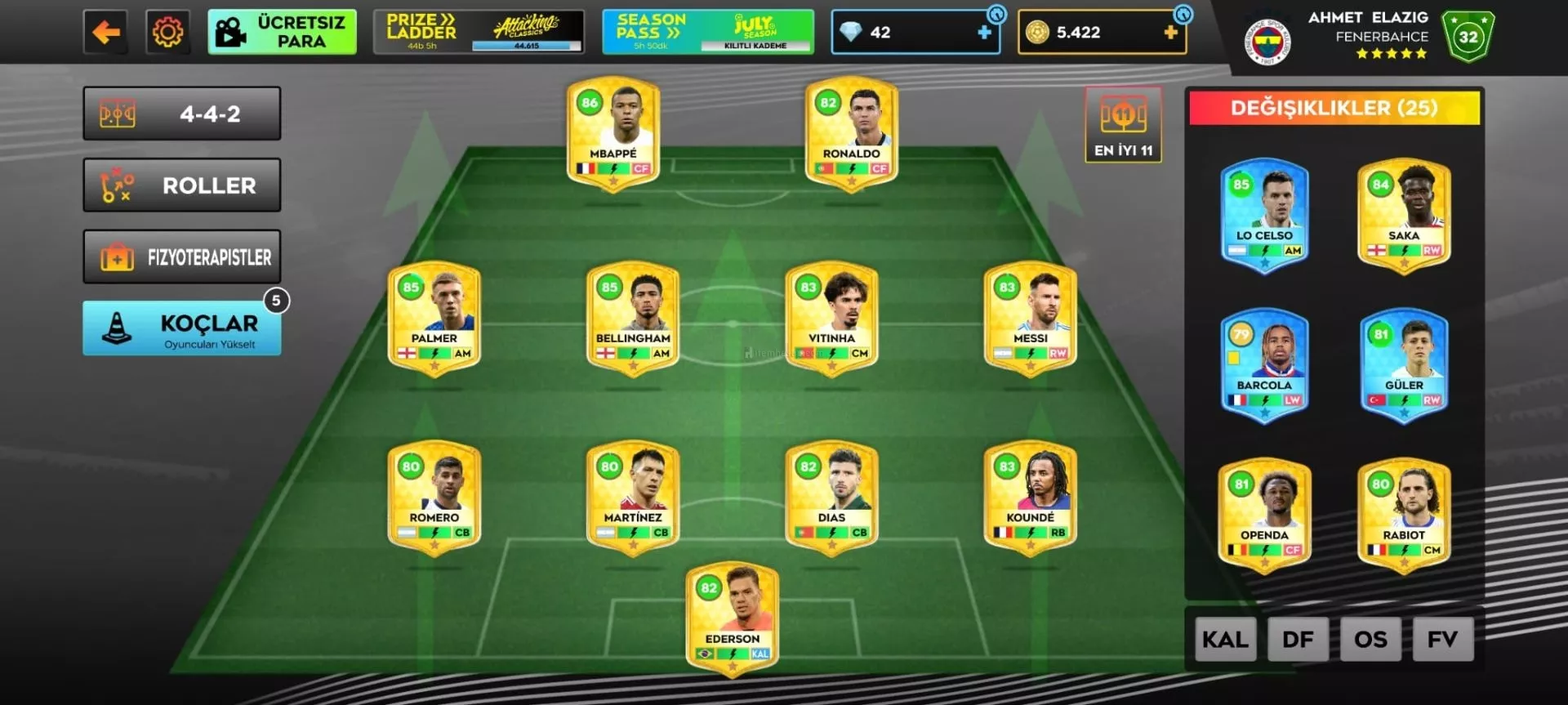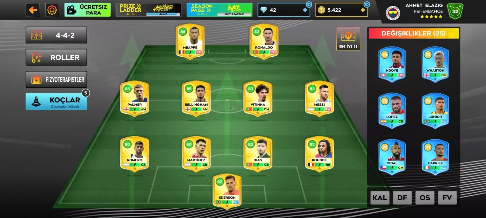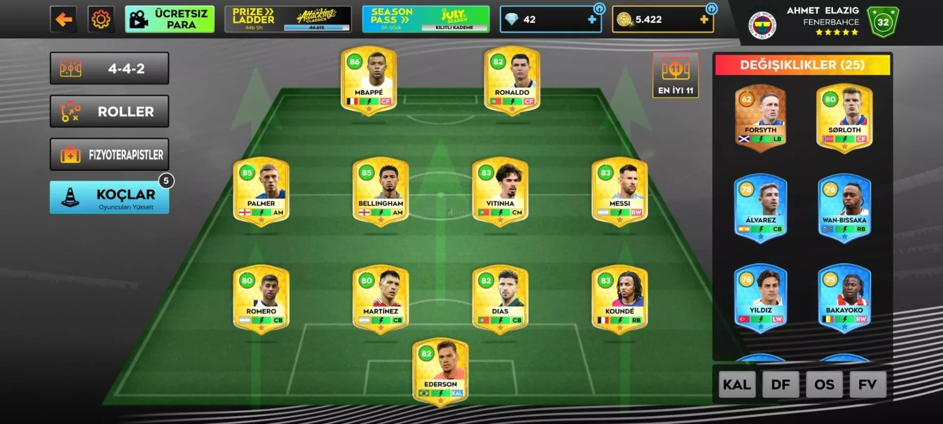 FORVET: RONALDO,MBHAPPE,ARDA GÜLER, OPENDA, SHORLOT,KENAN YILDIZ,BAKOYOKO, NDOYE