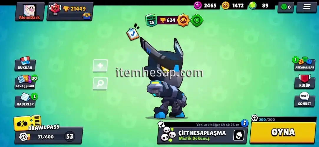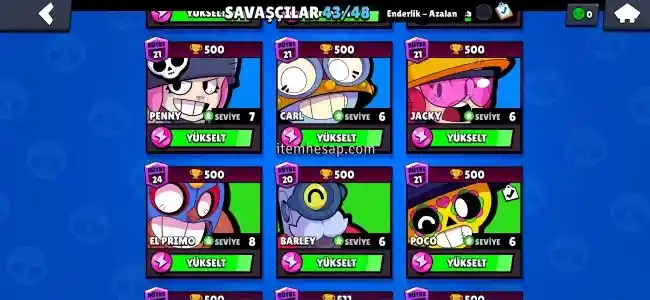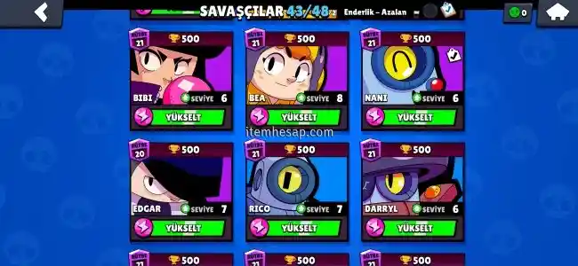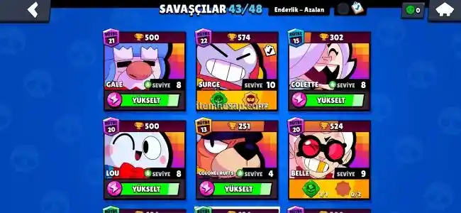 21.500 kupada dört dörtlük hesap isteyene instagramdan detaylı video atılır. Hesap maxs kutulardan sadece altın çıkıyor. Hesabın içerisinde 89 taş var bu sezon ve diğer sezondaki elmaslar toplanırsa diğer sezon brawl pass alınabilir.