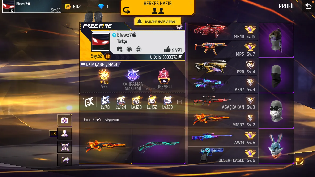 Efsane Free Fire Hesabi Tavuk Ifadeli Mp40 kobralı hesap