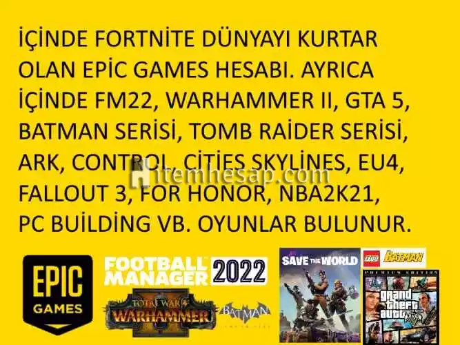 Epic Games Dünyayı Kurtar+Fm22+Gta5+Warhammerlı Hesap!!!! Toplam 50 Oyun