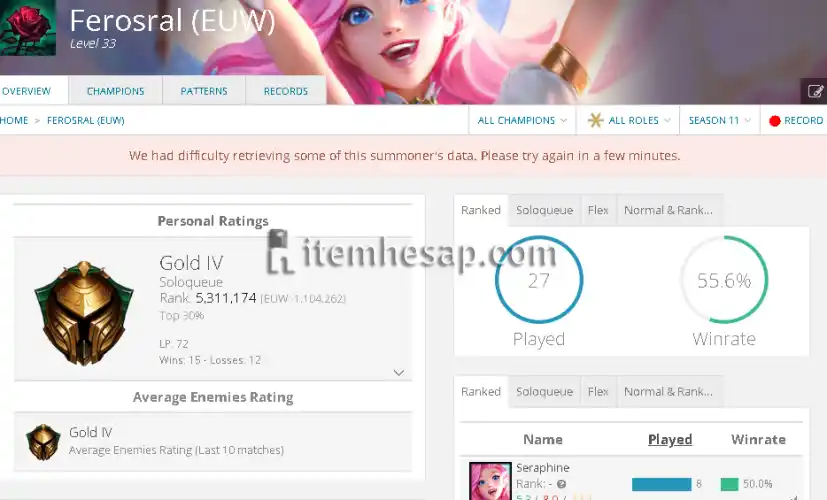 | Bölge/Server | EUW |