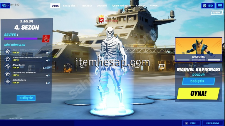FORTNİTE HESAP SKULL TROPPERLI ESKİ SEZONUN KARAKTERLERİ VB.