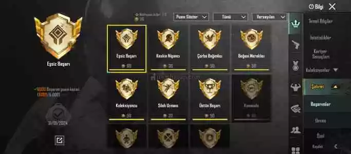 18 destansı, Godzilla m4, buz diyarı kask, 5 destansı amblem, altı kuşak ünvanı, eşsiz başarım ünvanı jilet gibi hesap.