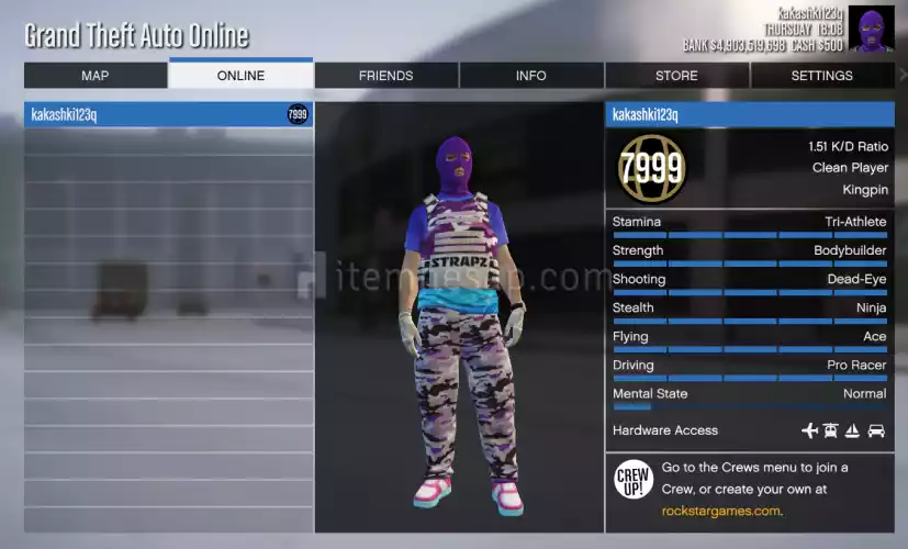 Gta 5 Hesabı 4.9Milyar$+7999-Level