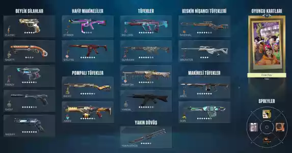Hesapta bulunan skinler şu şekildedir