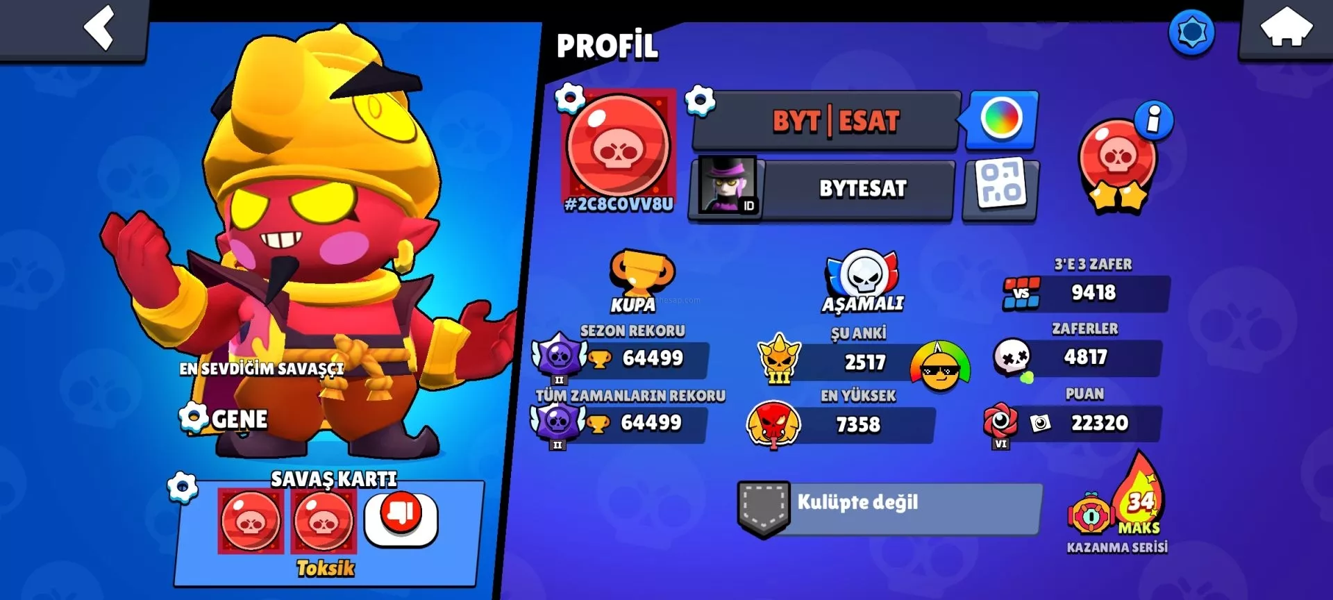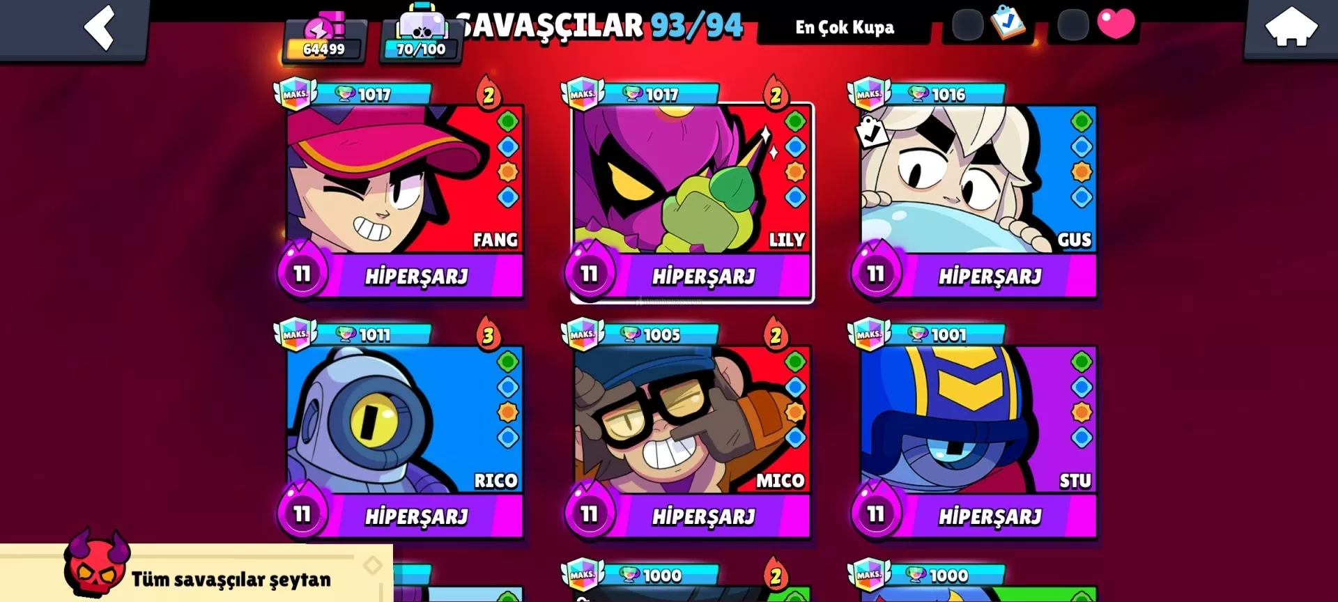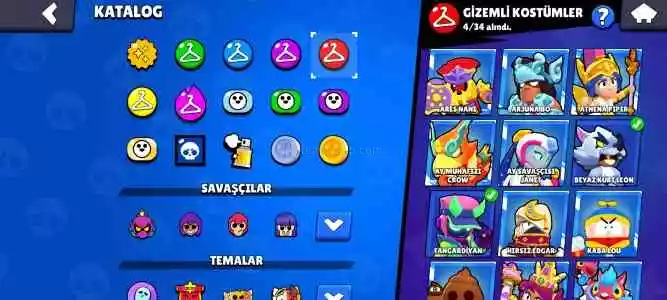 Hesapta 93 karakter var çoğunun hiperi açık bol kostümlü ve bol rozetli ve mars şöhretli hesap İsim değişme var  indirim olur