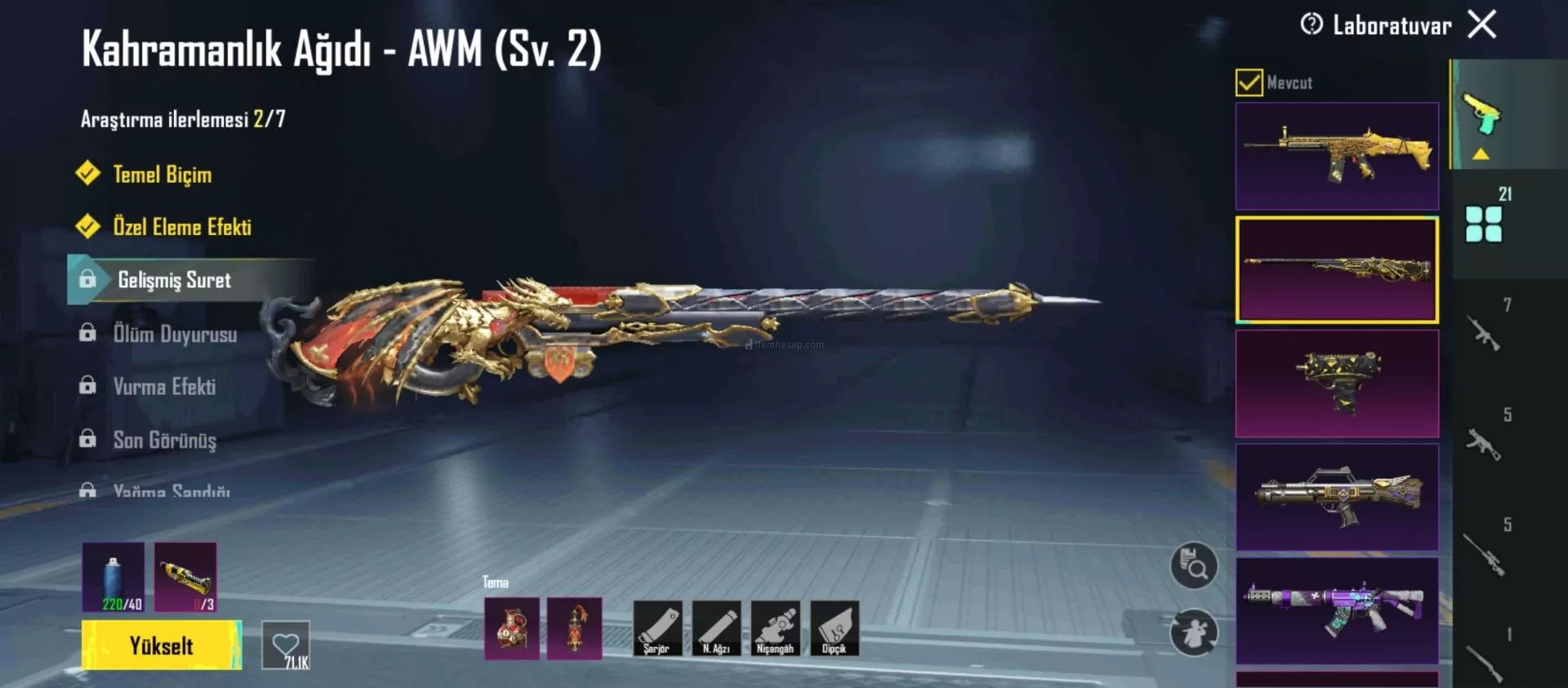 Başta olmak üzere 25 yükseltilebilir silah var sayamadığım ve yükseltilmiş olanlar var (max 3sv basılmış)
