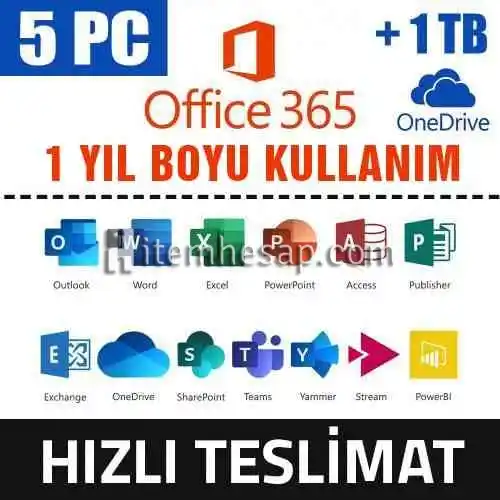 Office 365 Dijital Lisans Hesabı 1 YIL 5 CİHAZ