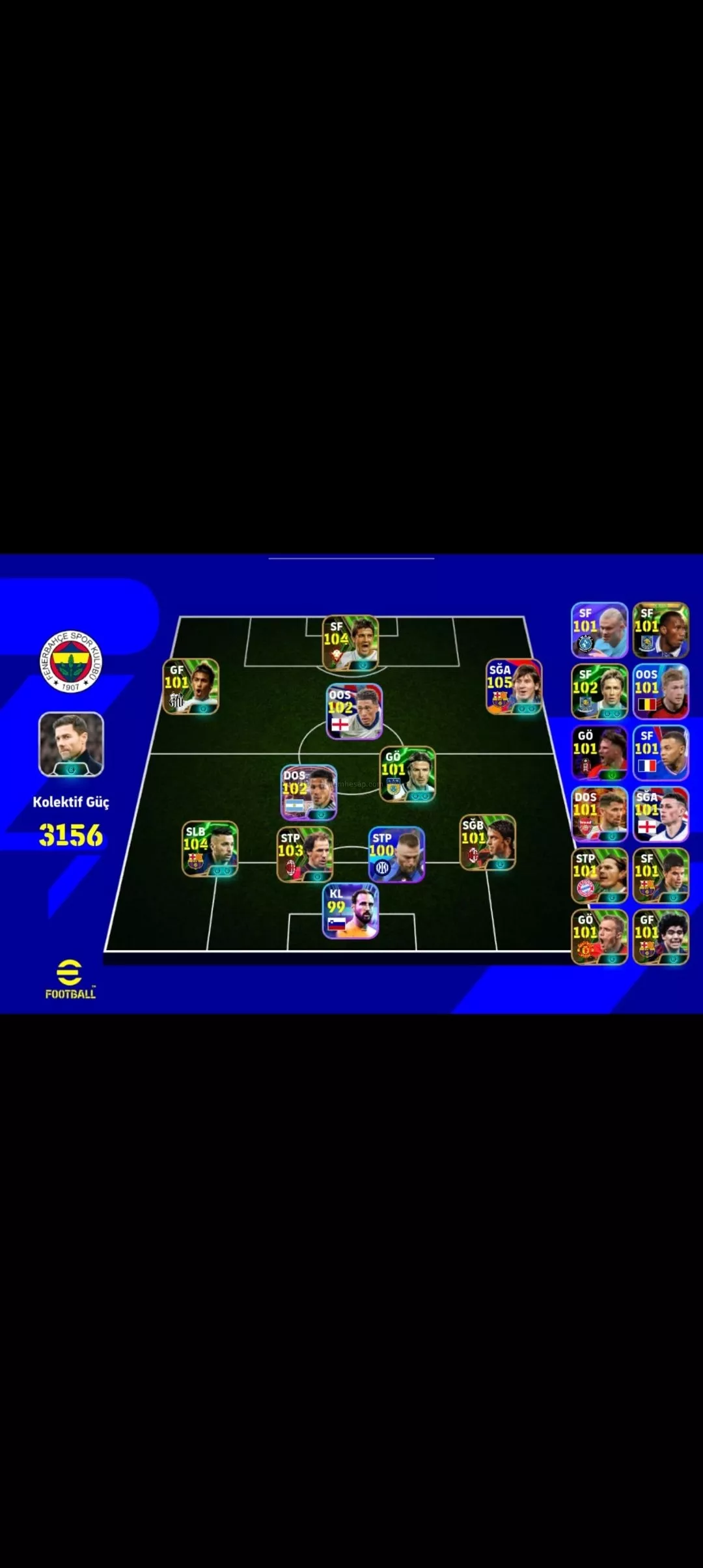 Pes hesabı 3156 kg 105 messi ve 104 david villalı