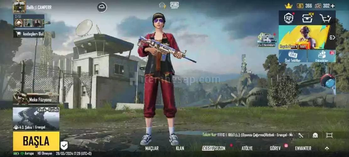 Hesapta 50 seviyeye kadar açık roall pass var bide 300 uc var geliştirilmiş thompson vardır alana hayırlı olsun detaylar için yazabilirsiniz hesap 56 seviyedir