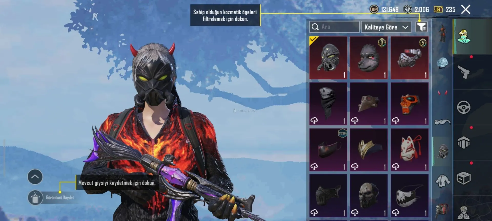 Pubg Mobile Hesabı 56 seviyedir  icinde 9 adwt destansi set 5 adet yukseltilebilir silah vardir 3 defa royal pass açılmıştır