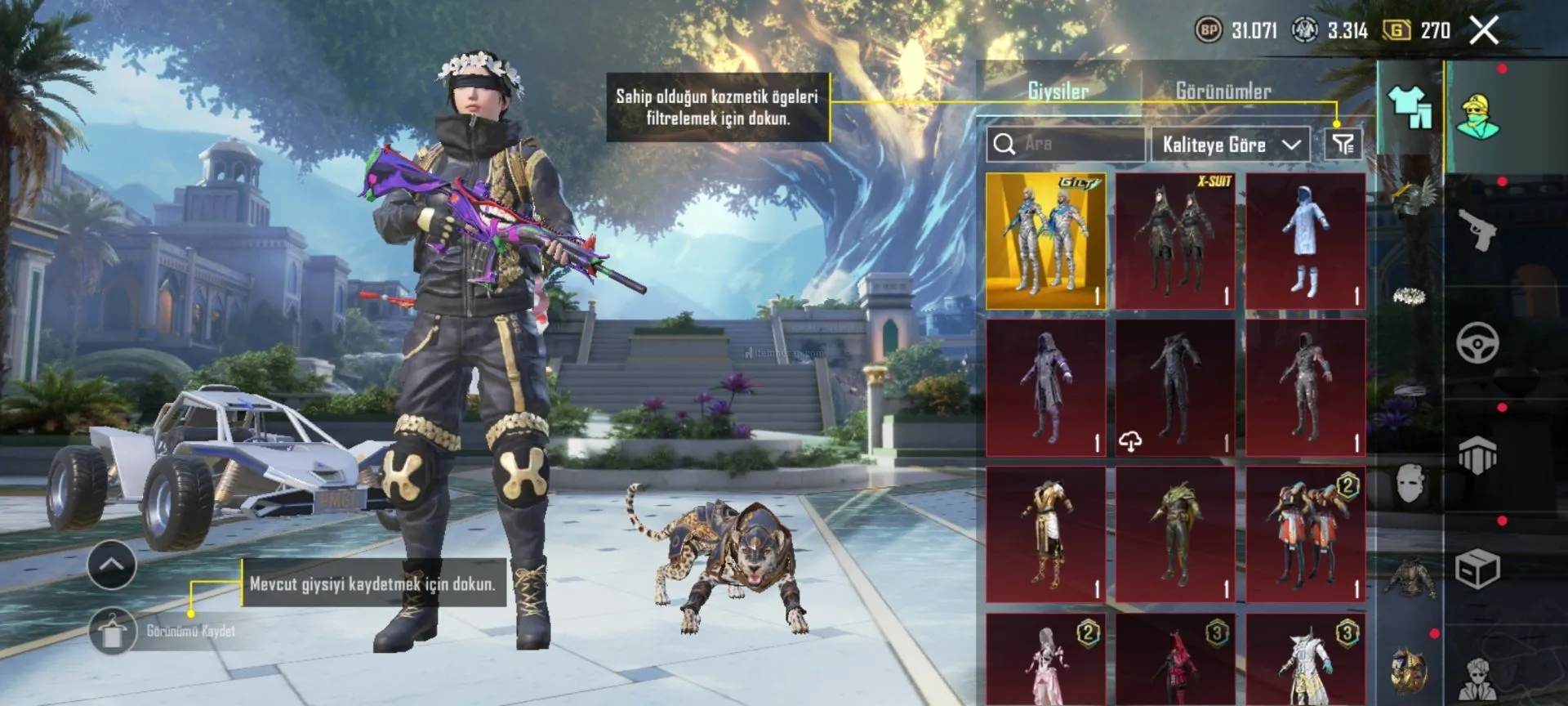 • Koyu Altın Seti (komple) – hesabın en nadir içeriklerindendir