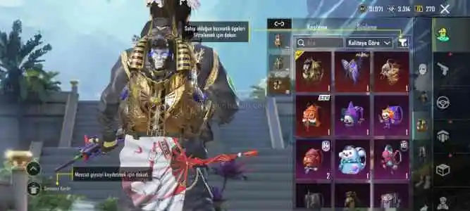 • Firavun çanta, özel kask desenleri bulunmaktadır