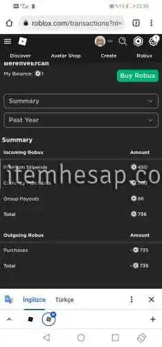 Roblox 736 robux luk hesap