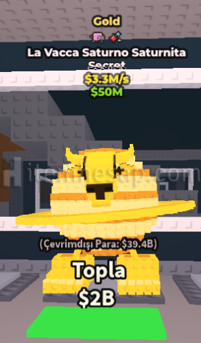 Roblox Steal A Brainrot La Vacca Saturno satürnita Altın ve 2 eventli