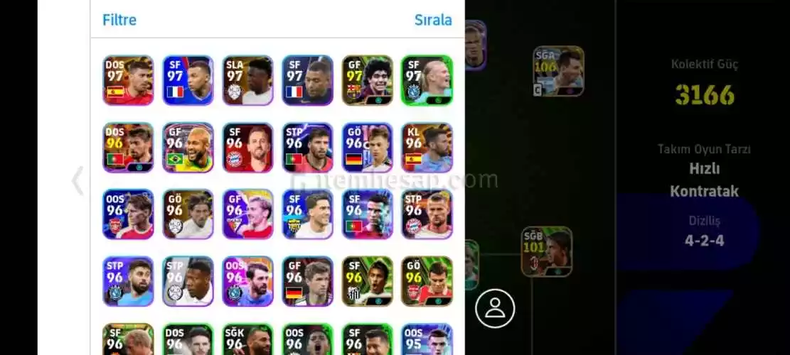 Hesap çok iyidir 105 Suarez 103 haaland 106 Messi 103 maldini gibi daha çok iyi kartlar vardır yedeklerde çok güzel 3166 Max kg pazarlık payı vardır