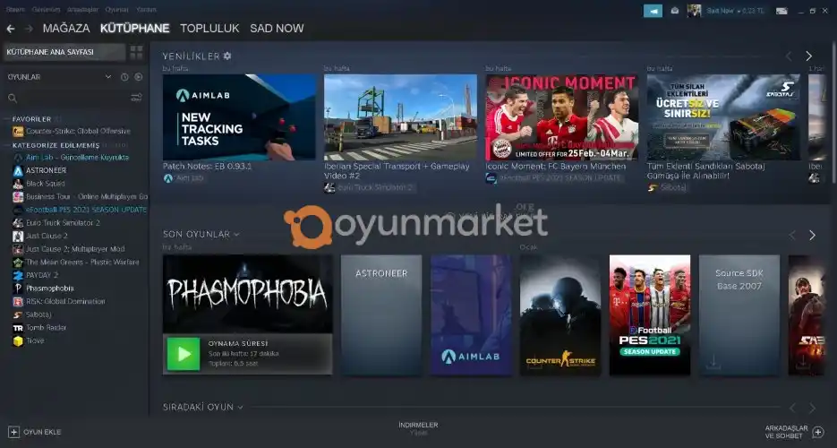 içinde ets 2 ve 11 dlc pes 2021 ,PHASMOPHOBİA ,PAY DAY2 400 saat fivem var