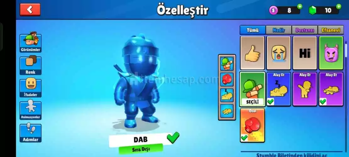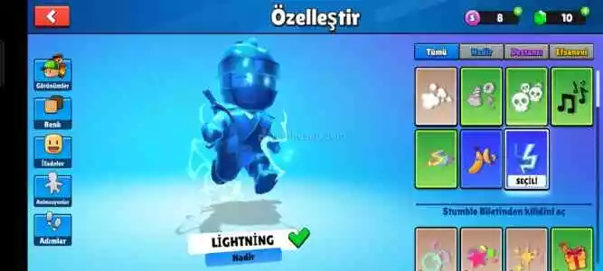 Stumble Guys 240 Taç+Mavi Özel+1Pass+Yumruk+Yildirim Yuruyuş Kaçirma..