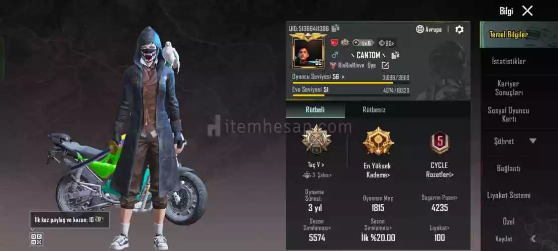 3 yıllık temiz pubg emek hesabı içerisinde 4 seviye DP yükseltilebilir silah var oyunu bıraktığım için acil satılık