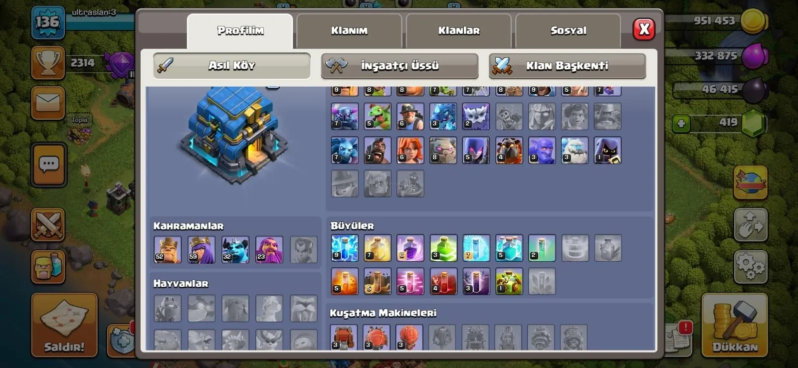 TH12 136 Lvl 541 Madalyalı Güzel Hesap