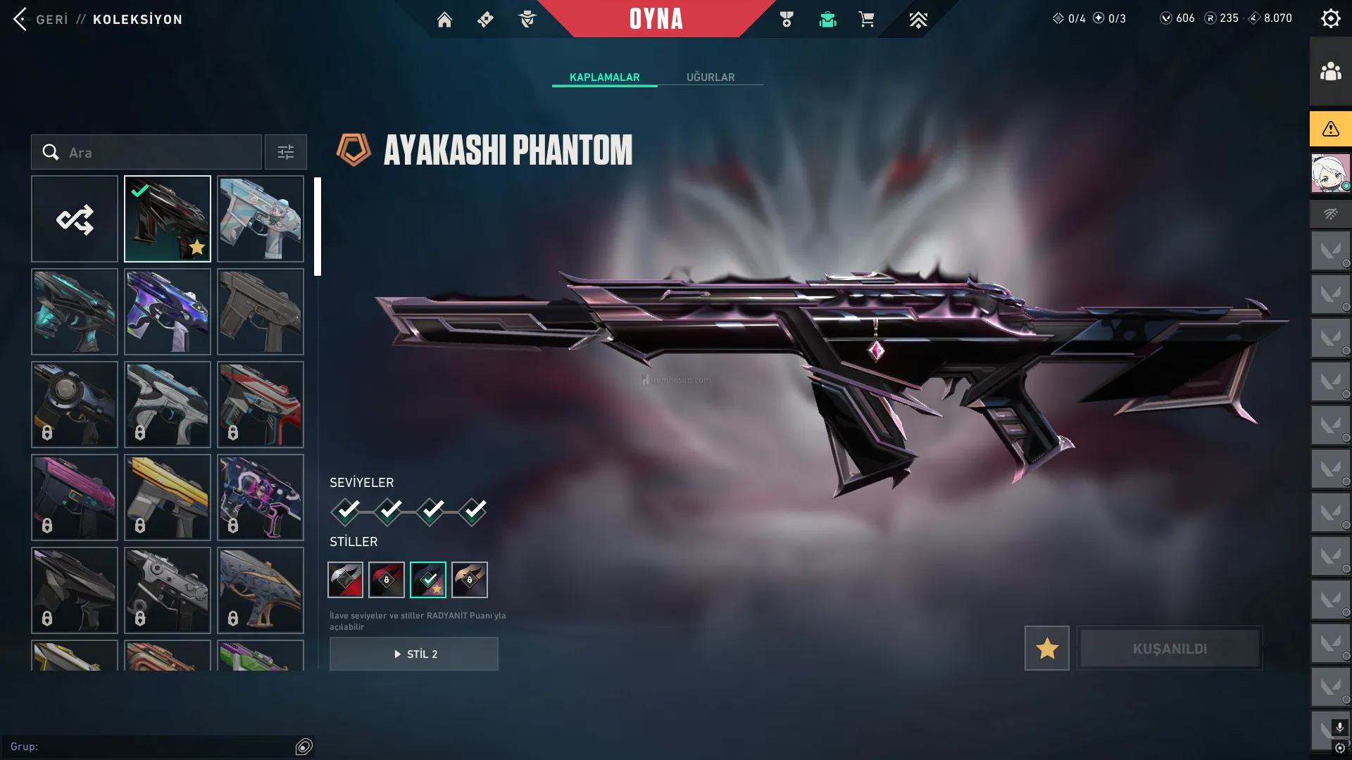 Valorant Hesabi Yeni SET Olan Ayakashi Seti Yeni Alinmiştir 11 Tane Animasyonlu Skin Immortal Hesap