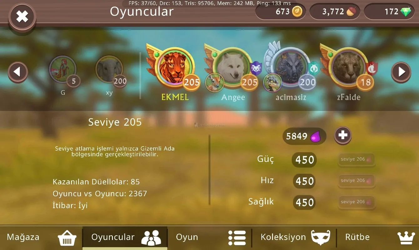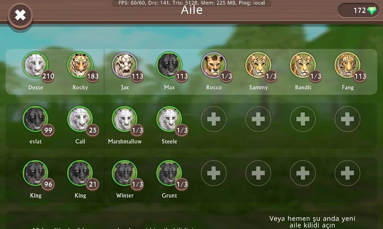 Hesapda 12 tane 200 sevıye 1 tane 210lvl(kaplan) iki tane 205lvl(aslan,puma)
